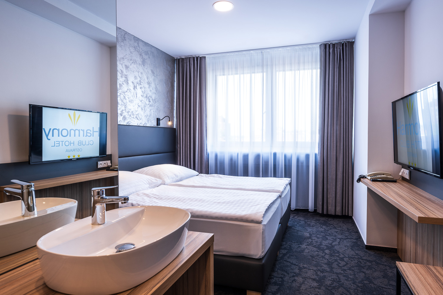 Hotel Harmony Club Ostrava offers quality and affordable accommodation in single and double rooms of the ECONOMY, DELUXE, SUPERIOR type and in family apartments for 2 - 6 people. All rooms are equipped with their own bathroom, sound-proof windows, TV and Wi-Fi internet connection.
