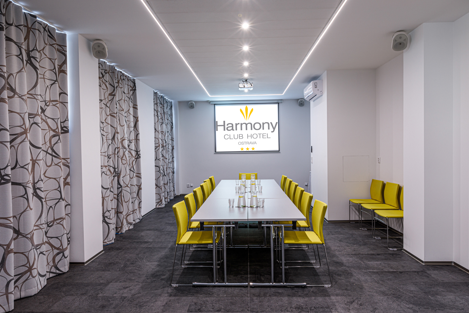 Všechny konferenční prostory mají přímé denní světlo s možností zatemnění a jsou vybaveny potřebnou audiovizuální a konferenční technikou, včetně WI-FI připojení.