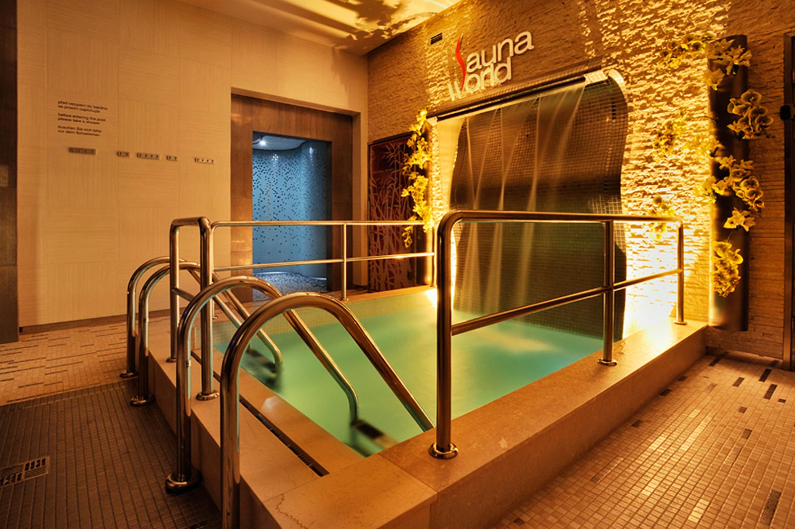 Неотъемлемой частью правильного процесса принятия сауны является последующее охлаждение холодной водой, которое имеет несколько форм: традиционное охлаждение подвешенным ведром с ледяной водой или классический ледяной душ. Более смелые могут воспользоваться бассейном с холодной водой, в бассейне имеется дополнительная струя холодной воды, дизайн решен в виде волн